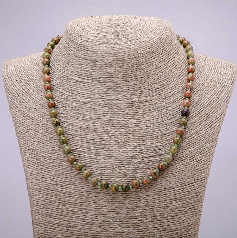 Бусы из натурального камня Яшма Гелиотроп гладкий шарик d-6мм L-48см