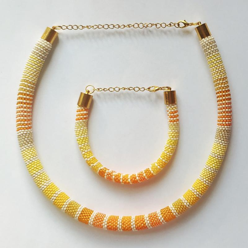 Сонячний комплект для літа, джгут і браслет 🌿Виготовлені з чеського бісеру 🌿Довжина бісерної частини джгута 40см + 10см фурнітура 🌿Довжина браслета 16см + 7см фурнітура 🌿Можливо придбати як комплектом за 750грн, так і поокремо джгут 550, браслет 200