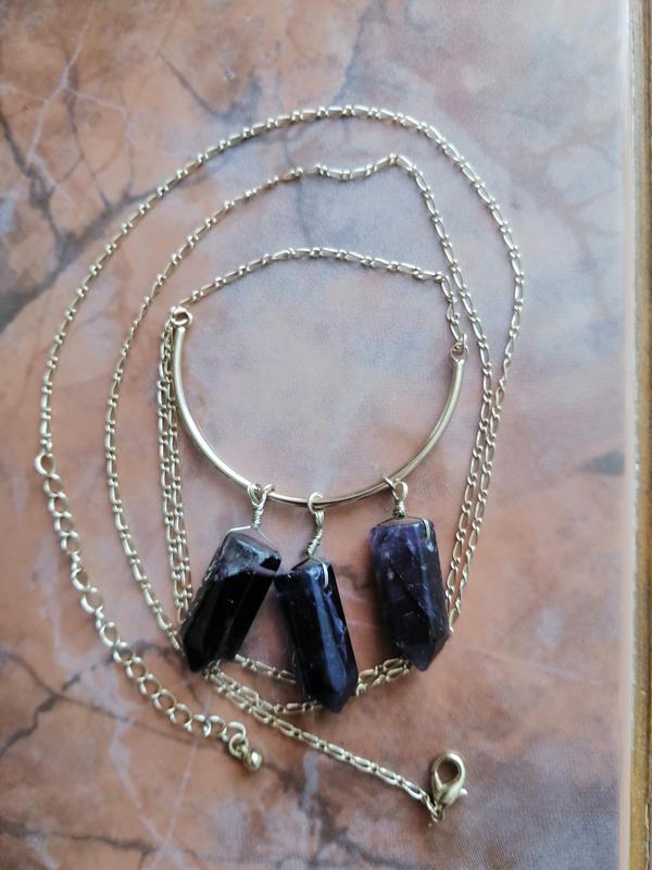 Очень стильное украшение. Аметисты нат. позолота 18 кар. Длина 90 см. 5 см удлиняющая цепочка.