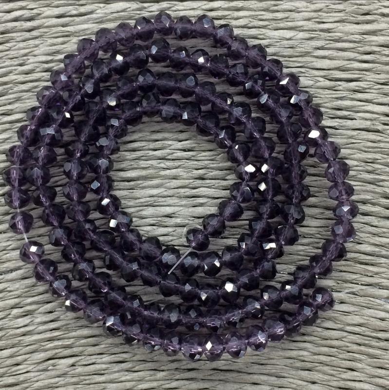 Бусины на нитке Стекло рондель d=4мм цвет аметистовый (~150 бусин на нитке)