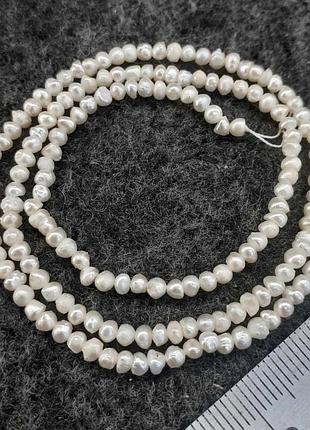 Бусины на нитке жемчуг мелкий белый d-3х2,5(+-)мм L-38см