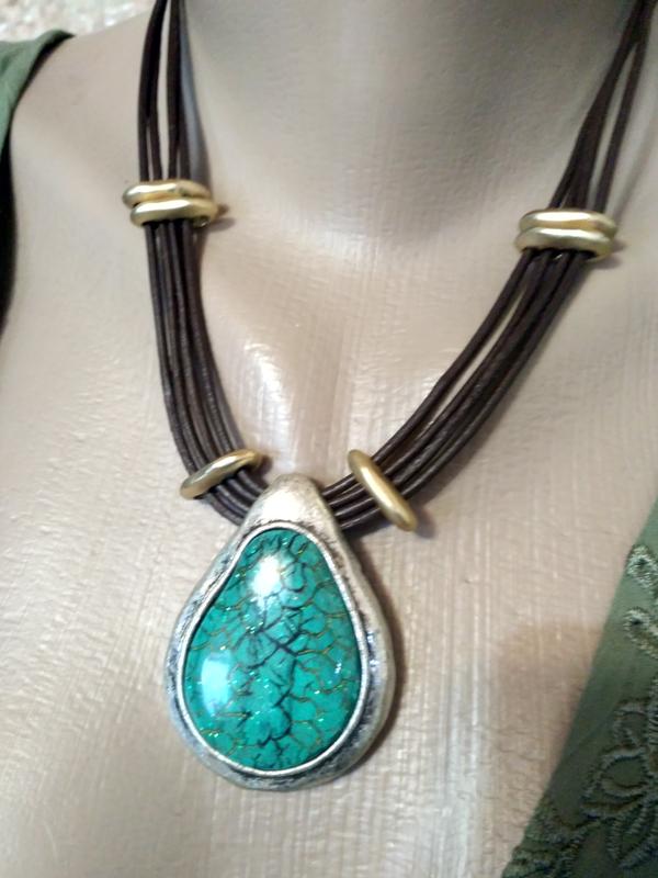 Винтажное колье из 80х.Кожа,металл,керамика.