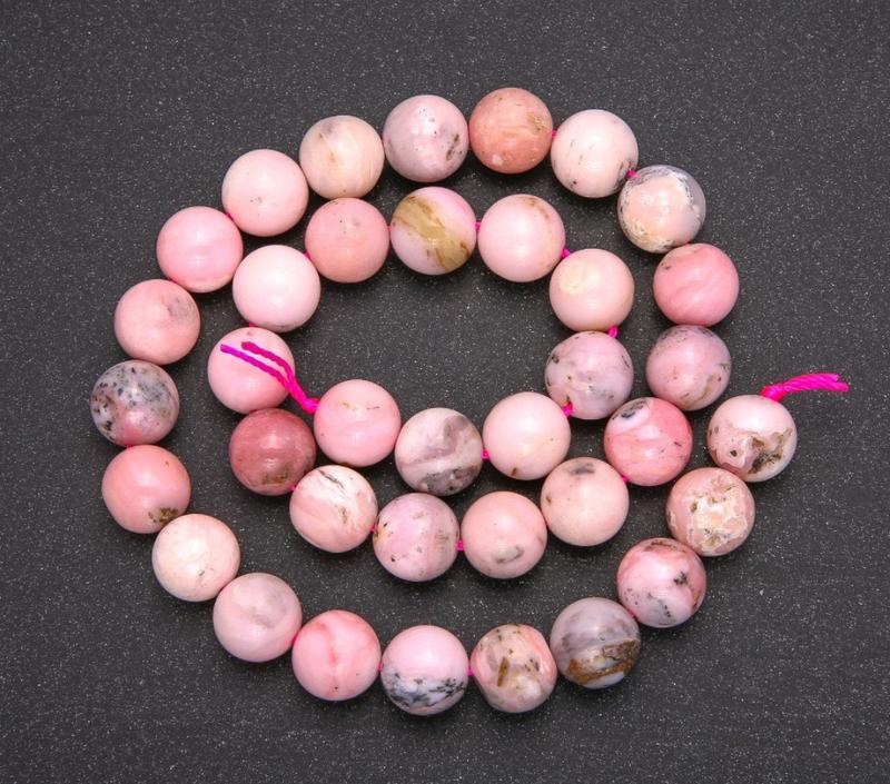 Бусины из натурального камня Розовый Опал гладкий шарик d-10(+-)мм L-38см