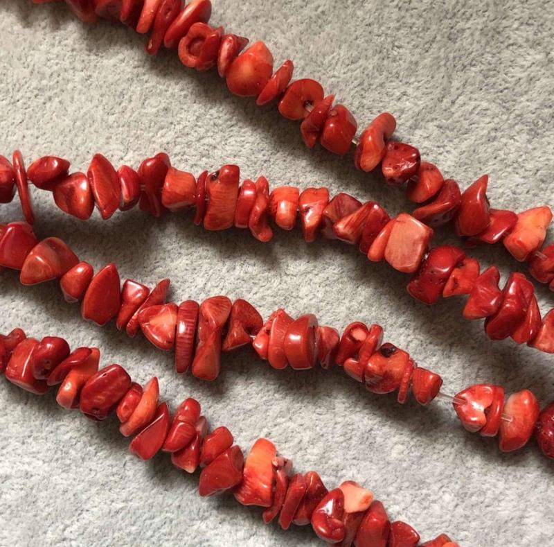 Бусины Коралл на нитке крошка +-8мм L-88см.