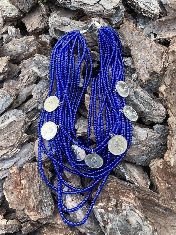 Намисто з індійськоі склокераміки, металева фурнітура, вощений шнур. Ручна робота.