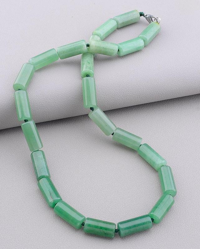 Бусы Нефрит 45 см. Размер камня: 18х6 мм. Вес: 48,68 г. Длина: 45 см. Камень: Нефрит(нат.) Тип замочка: Карабин