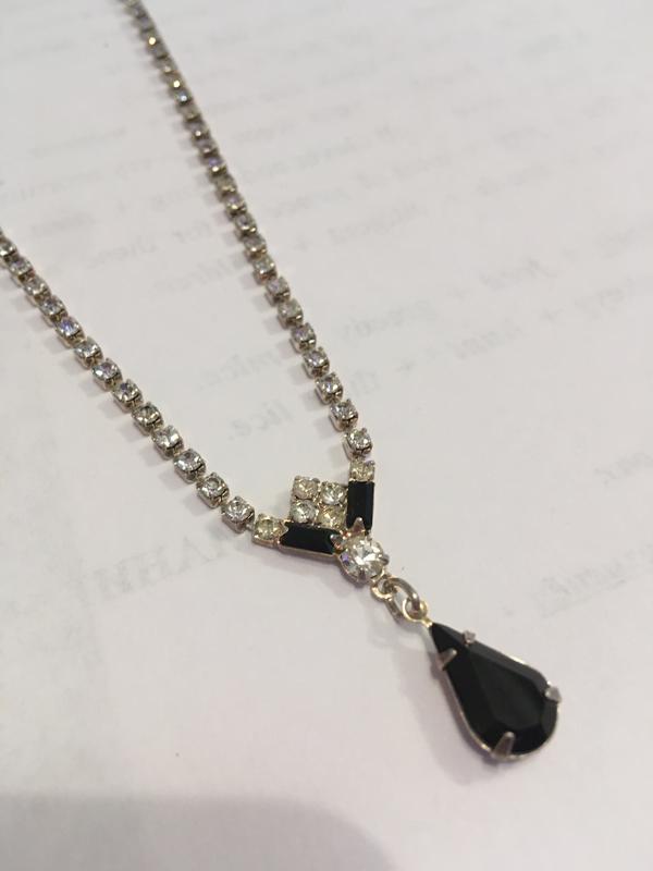 Кольє в срібному тоні з кристалами застібка коробочка довжина з підвіскою 22 см