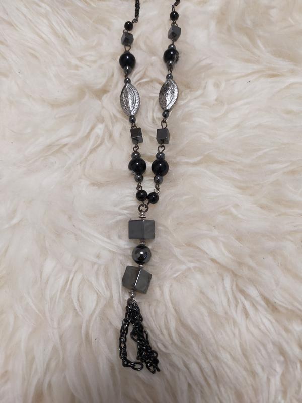 Ожерелье бусы колье метал, камень гематит длина 76см