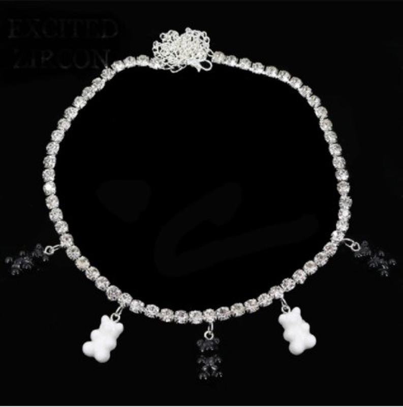 Намисто з ведмедиками колір чорний + білий - довжина 35см + 22см, (ругелируется), смола, цинковий сплав