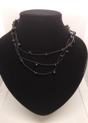 чёрное ожерелье чокер на застёжек стеклянный бисер,стеклянные камешки три ряда длина 38 см+6 см доп.цепочка