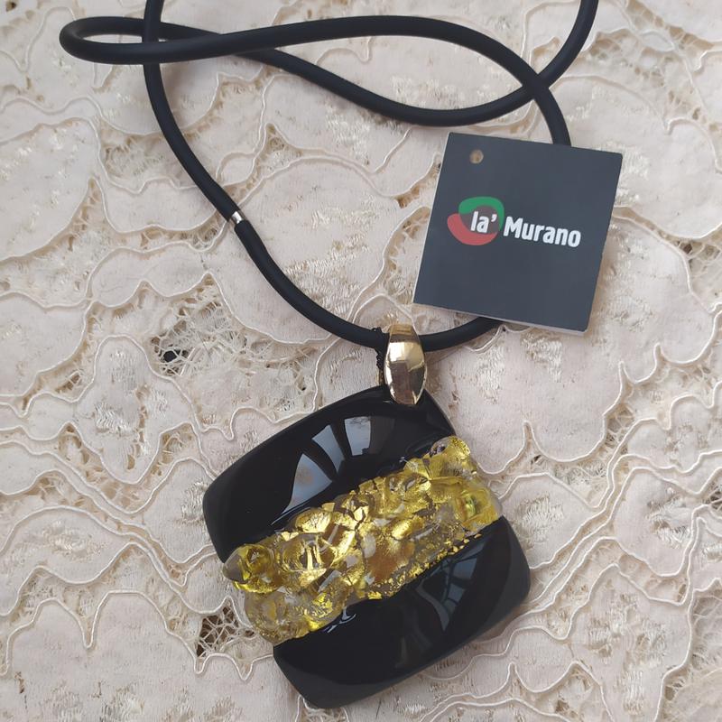 Кулон из муранского стекла с золотом на каучуковом шнуре. Маркирован. Оригинал.