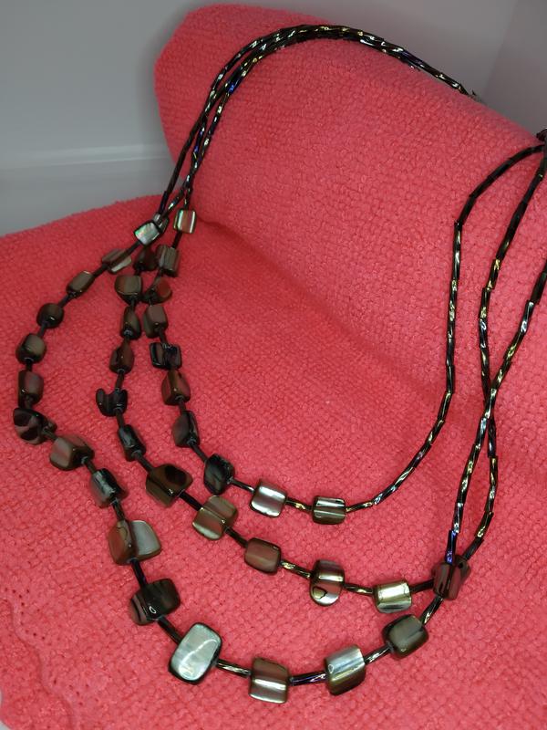 шикарное трехрядное колье на застёжке украшено настоящим перламутром и стеклярусом длина 42+7 см