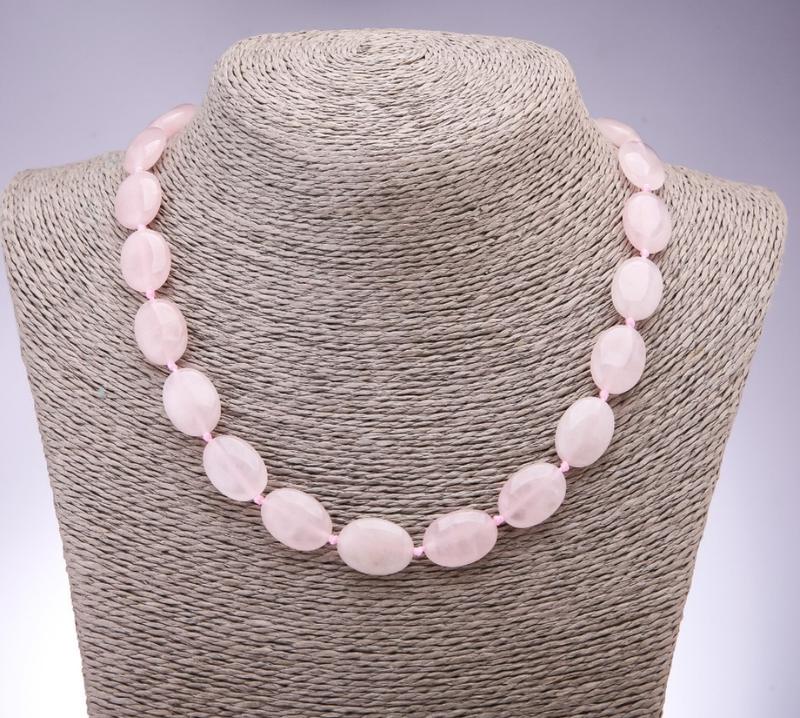 Бусы из натурального камня Розовый кварц плоский овал d-13х18мм+- L-45см