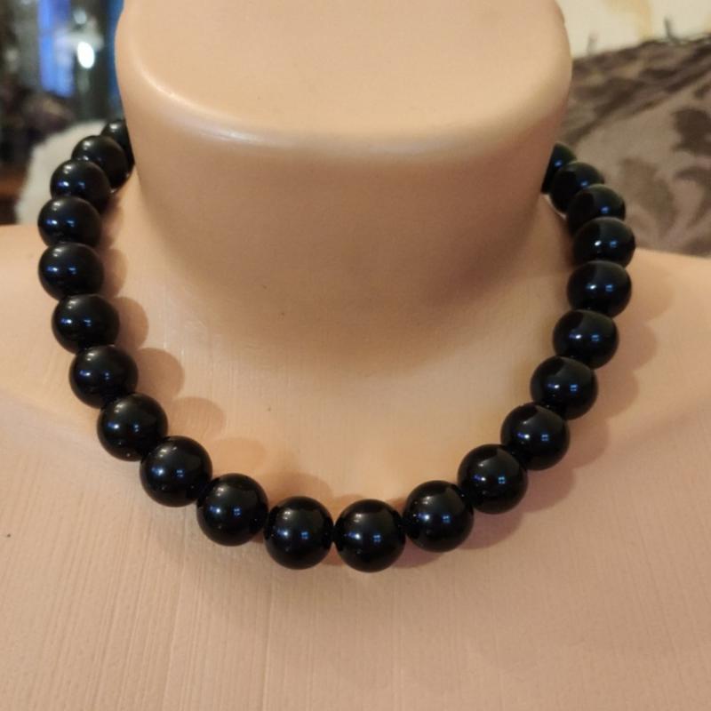 Стильные крупные черные бусы