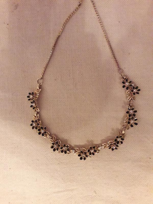 винтвж колье ожерелье чокер , очень красивый. Не зватает 1 кристалла, в носке вообще не видно. На цветочках черная эмаль.