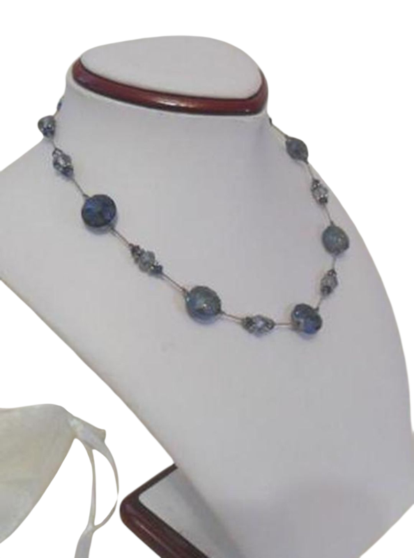 Колье из больших, красиво ограненных бусины, и из мелких бусин, с легким напылением аврора бореалис. Мешочек. Длина 44 см.