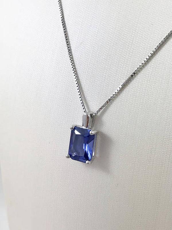 Опис Характеристика підвіски: Метал: срібло Проба: 925. Виріб опробовано пробірною палатою України Вставки: танзаніт синт. Середня вага: 1.53 гр Довжина : 15 мм Ширина: 8 мм Розмір каменю : 10*8 мм.