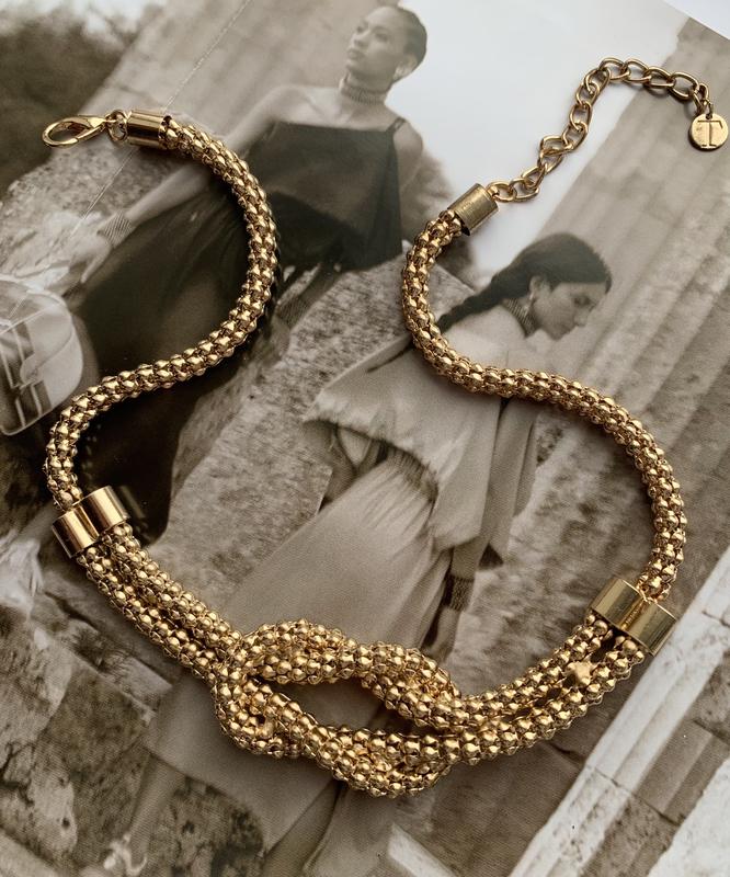 Неймовірно стильний і ефектний чокер від американської компанії Talbots (США, 1990-ті рр.) Кольє у вигляді джгута з оригінальним плетінням і акцентним вузлом. Бижутерный сплав у відтінку благородного золота. Маркування T на металевій бирці. Довжина - 43 см, подовжувальна ланцюжок -7 см Діаметр джгута - 0,6 см Вузол - 3х5 см У відмінному вінтажному стані. * на тильній стороні є незначне потемніння металу (2 останніх фото). Зовсім не впливає на естетику прикраси. Враховано в ціні.