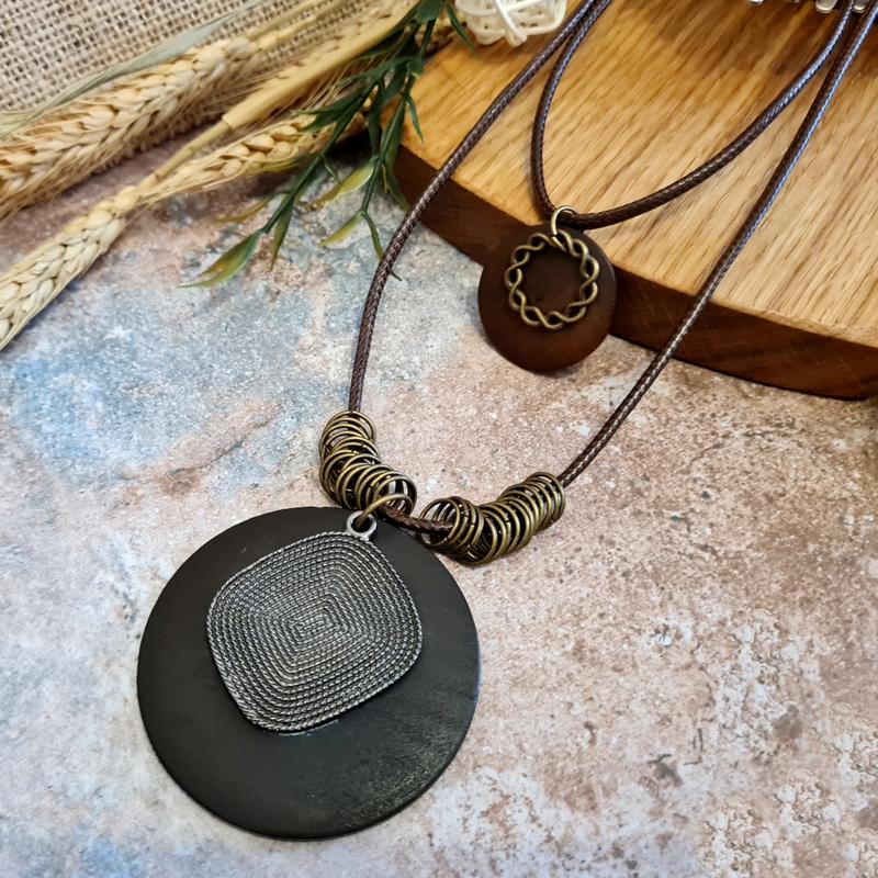 🌳💚 Двухслойное колье в стиле Бохо с подвесками из натурального дерева. Шнур темно-коричневого цвета, фурнитура бронзового цвета, есть регулировка длины. Смотрите видео-обзор (вверху страницы) этого колье, чтобы увидеть всю его красоту. !!! В продаже есть подобное колье с зеленой подвеской (см. последнее фото).🌳💚 Размер: длина без учета подвески 80 и 68 см + 5 см цепочка регулировки длины. Размер подвесок зеленая 6 см и коричневая 3 см Состав: шнур из вощенной нити, натуральное дерево, бижутерный сплав.