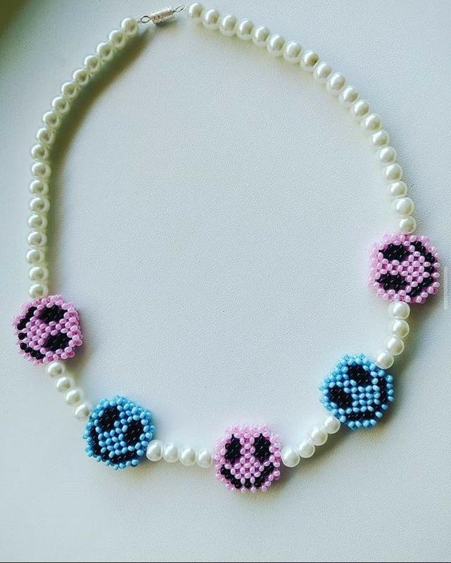 Яскраве намисто з бісеру і намистин. Робимо під замовлення за вашими розмірами. Можна вибрати інший колір фігур.