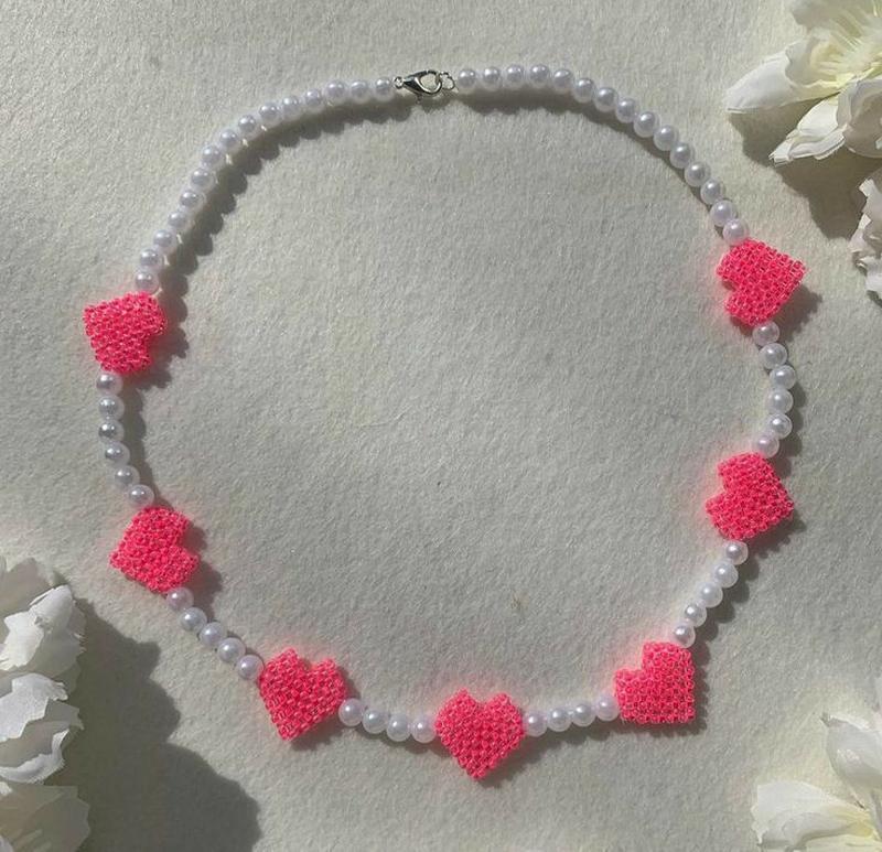 Нежное ожерелье с сердечками ✨ Делаем под заказ по вашим размерам. Можно выбрать другой цвет бисера.