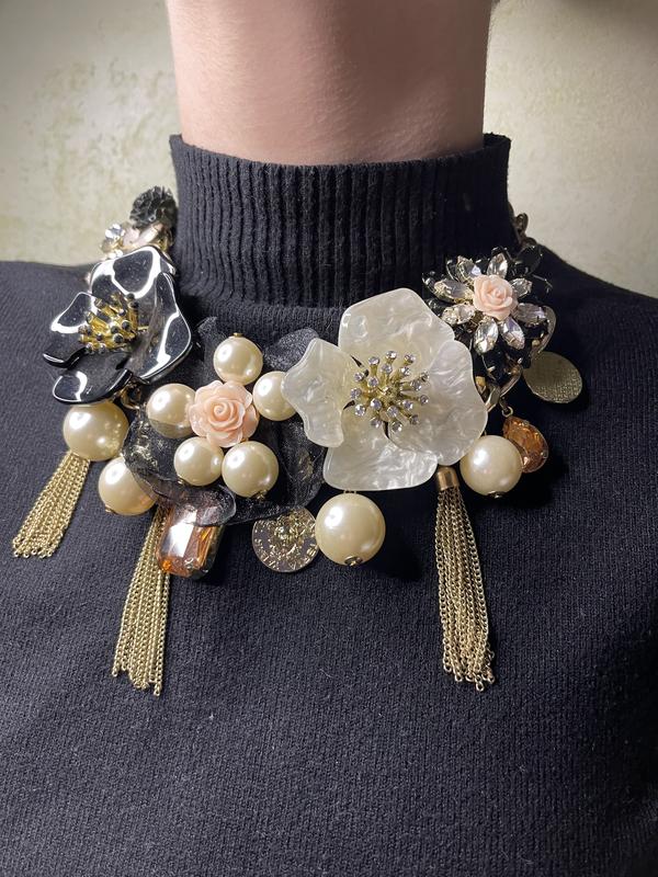 Модное, стильное колье! Украсит любой образ. Цветы, бусы, цепи. Не носилось.