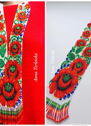 Красивий гердан , виготовлений з якісного чеського бісер та міцної нитки. Довжина виробу 56см, ширина нижньої частини 8 див. Гарно пасуватиме до однотонного вбрання.
