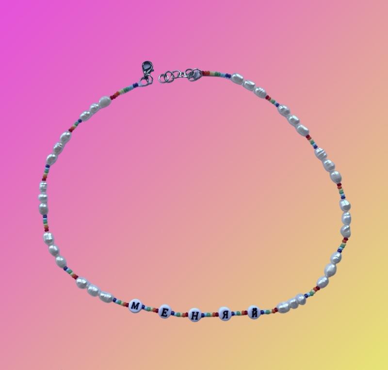 Чокер-ожерелье из бисера и жемчуга со слоганом