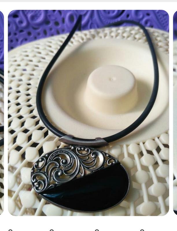 Серебряное колье с ониксом на каучуке, застежка серебро.