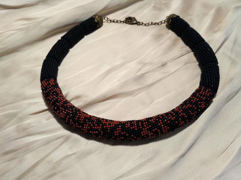 Жгут 1 из японского бисера с переходной толщиной 1,5-1,8 см, регулируемая длина 52-57 см.
