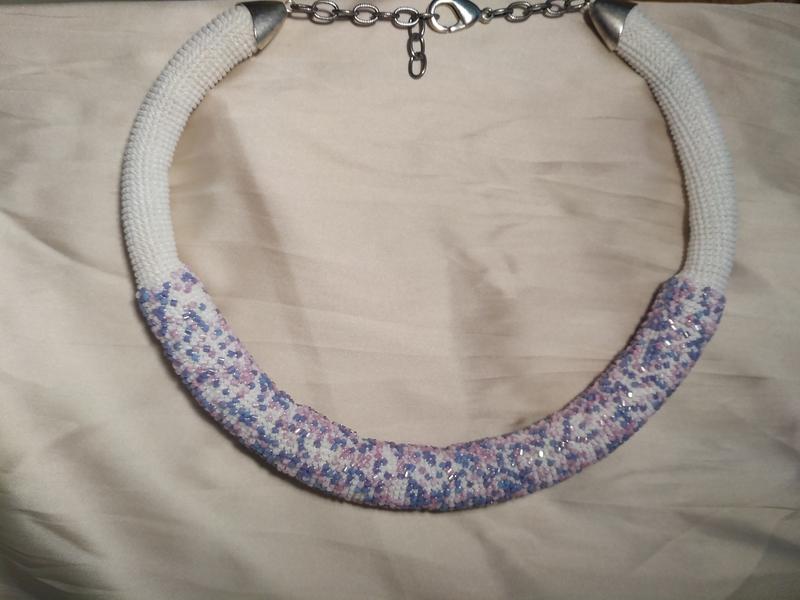 Жгут 3 из японского бисера, толщина центальной части 2 см, толщина основы 1,4 см, регулируемая длина 53-59 см.