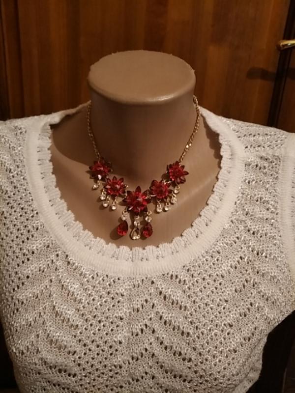 кольє з каменів червоного і срібного кольору....один камінчик червоний відсутня тому така ціна ..кольє нове є етикетка...
