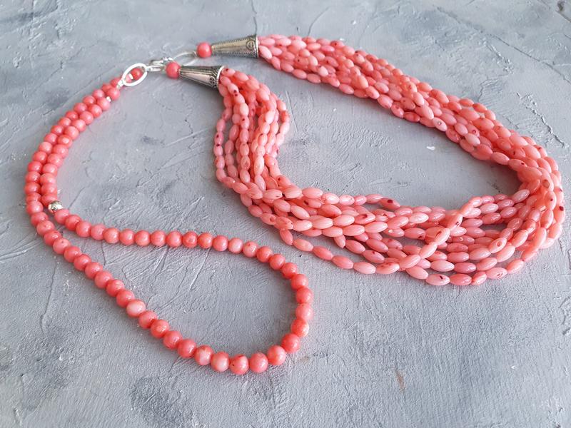 Бусы-трансформер "КОРАЛЛ лососевого цвета" Бусы ручной работы. Бусы из 10 нитей натурального коралла формы "рис". Носить можно в разных вариантах. Верхняя часть бус с бусинками 6 мм, отстегивается и можно носить отдельно. Длина 45 см Нижняя часть состоит из 10 ниточек, которые можно перекручивать. Замочки на бусах - серебро. Очень необычный и качественный замочек. Длина 48 см Общая длина бус ― 95 см.