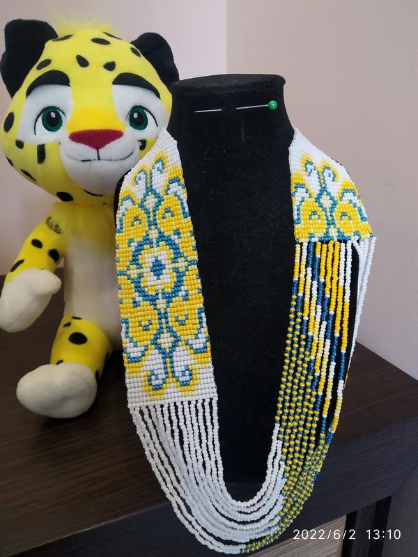 гердан в сине-желтых цветах, ручной работе по чешскому бисеру под заказ.