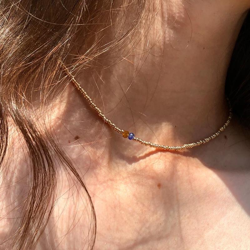 Намисто з бісеру з жовто-синіми кришталиками. Довжина індивідуальна, за вашими замірами. Бісер може бути золотий або білий.