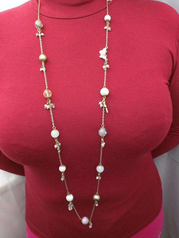С витрины, без дефектов. Длина 1м. 10 см. Диаметр крупной бусинки 12 мм. Металл, пластик.