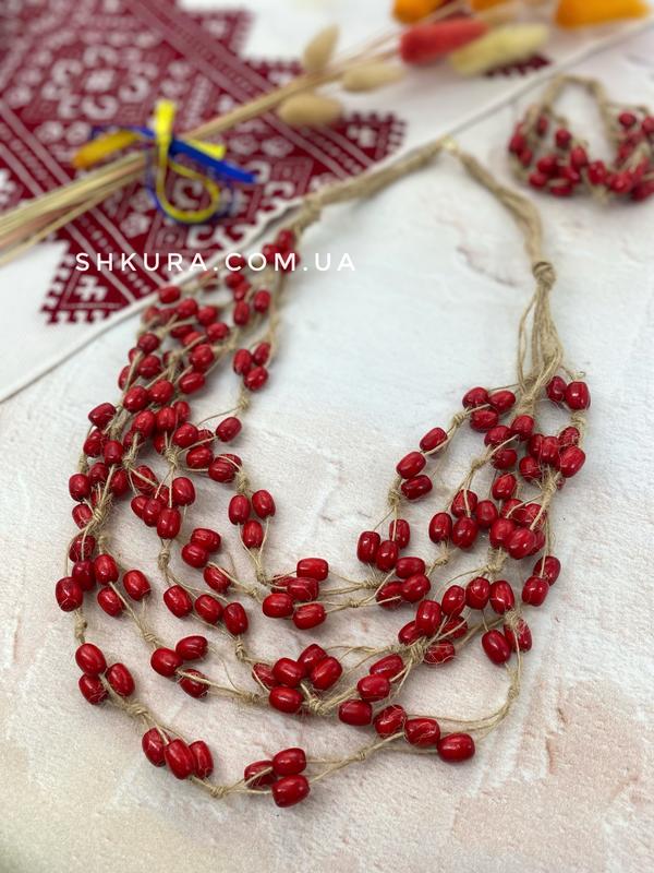 Красиве намисто ручної авторської роботи у різних кольорах. Виконане із ниток льону та дерев’яних намистин Ціна намиста без браслета 150 грн.