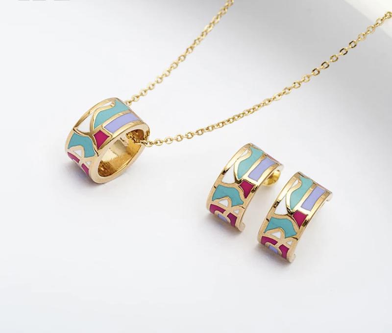 Набiр ювелiрних прикрас колiр золото. В наборі: сережки, ланцюжок, кулон.
