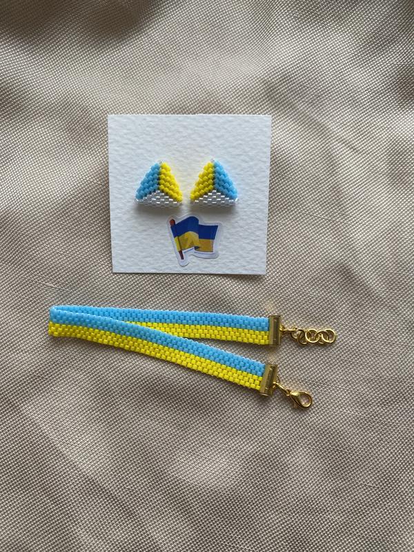 Чарівний наборчик у кольорах прапору. Все більшої популярності набувають прикраси в кольорах прапору. Набір виконаний з високоякісного японського бісеру. Відправка замовлення наступного дня після замовлення.