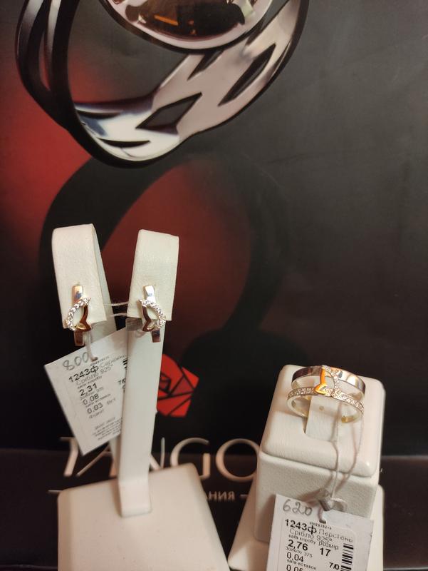 Набір срібний з золотими пластинами та фіанітами. каблучка-770, сережки-1030. Можна придбати окремо. Каблучка іншого розміру під замовлення.