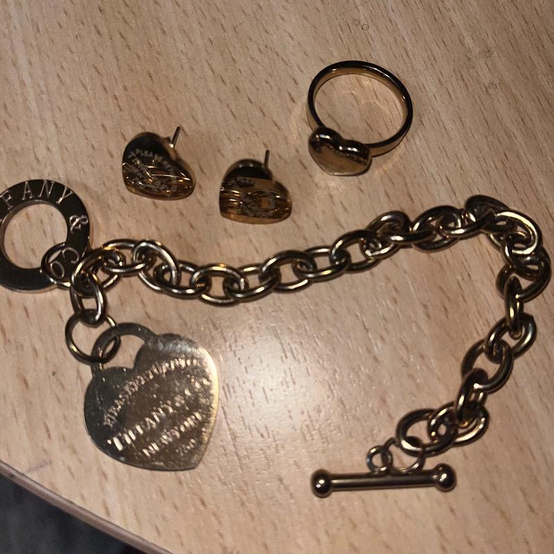 Тиффани, медицинское золото. В набор входит серьги-гвоздики, кольцо и браслет