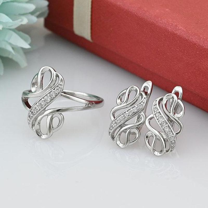 Набор xuping 64967 кольцо + серьги 16х11 мм белые фианиты позолота белое золото размер 16