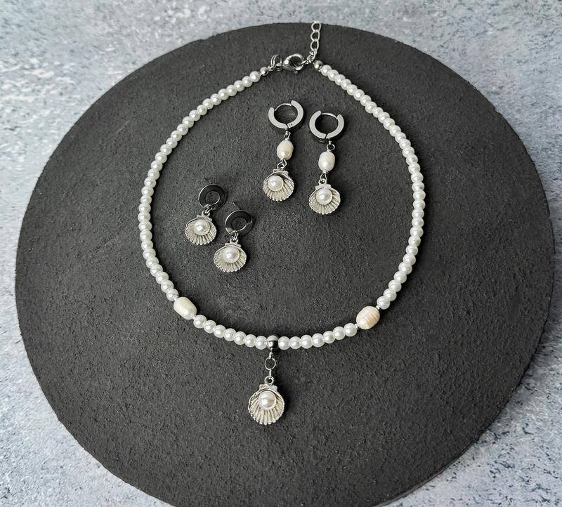 Набір з мушлями чокер та сережки (2пари) ручної роботи