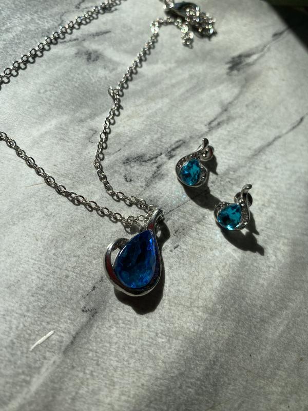 Набор гарнитур серьги капля воды и кулон с цепочкой под серебро 925