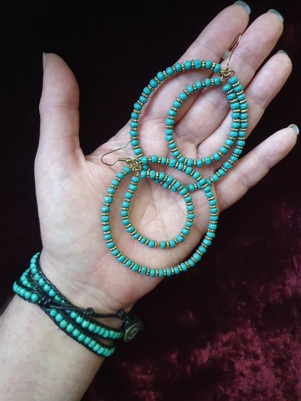 Винтажный набор в стиле бохо, состоящий из браслета и сережек. Европейский винтаж. Состав: камень или смальта, дерево, кожа, металл. Состояние очень хорошее. Общая длина браслета 56 см. Замеры на фото. Все фотографии актуальны. Вы получаете товар указанный в объявлении и на фотографиях.