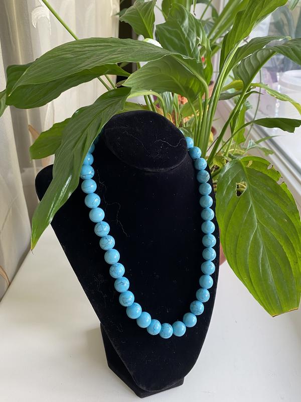 Женский комплект из аквамарина Длина бус с застежкой 48 см Длина серег 5 см