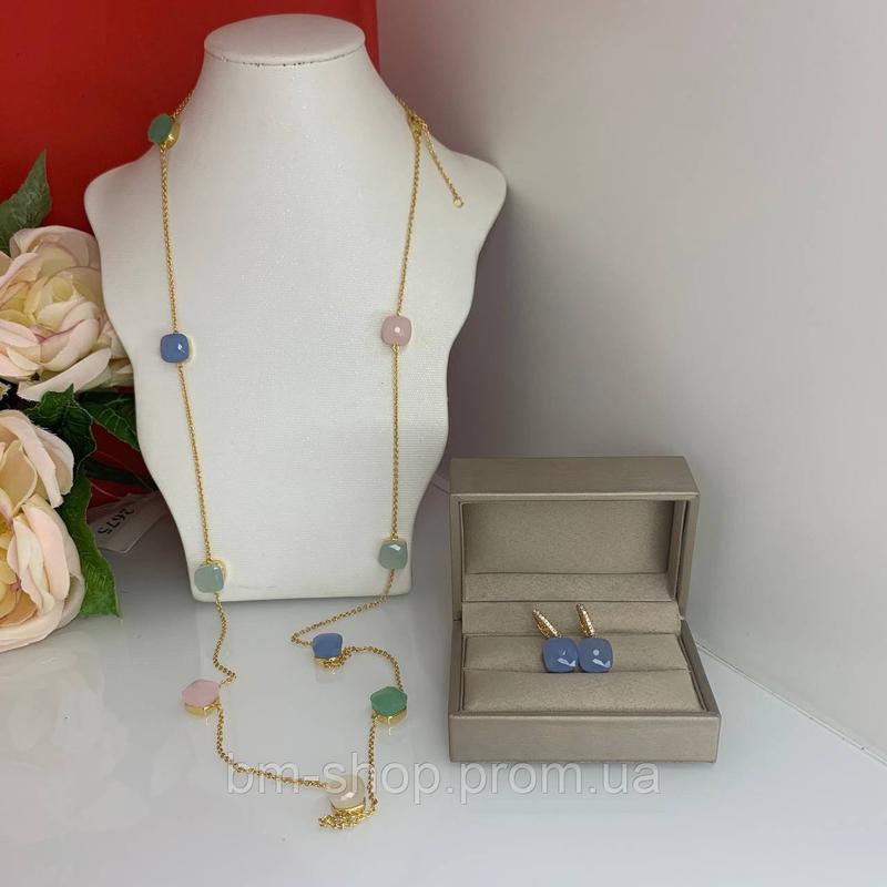 Помеллато комплект- позолота, подвеска и серьги голубого цвета