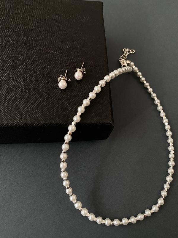 Чокер и серьги-самоколки из жемчуга Ціна за комплект Материал: медицинский сплав высокого качества ( не стирается проверено на личном опросе)