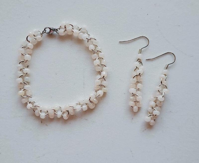 набор из крупного бисера 2-3 мм, металл серебристый бижутерный браслет на 17 - 18 см / 115 грн серьги ок 5.5 см / 95 грн БЛЕДНО - БЕЖЕВЫЙ возможны варианты по вашим размерам