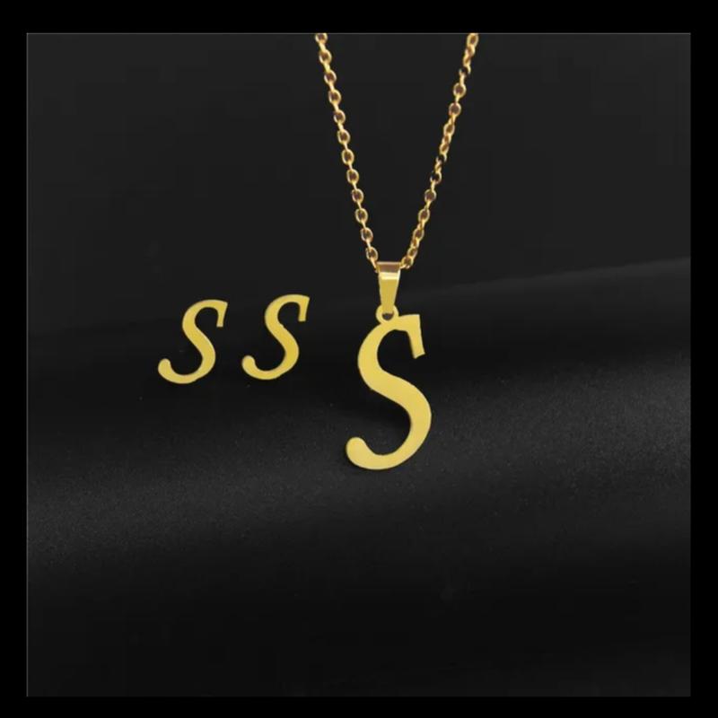 Набор серьги и цепочка с кулоном колье буква нержавеющая сталь